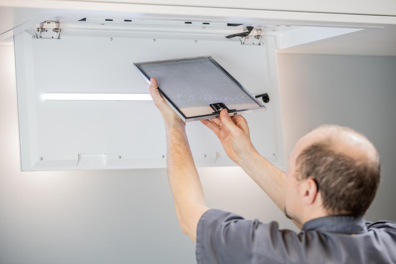 Svar: Det är en inbyggd filtervakt som påminner dig om att diska dina fettfilter. Håll in belysningsknappen i