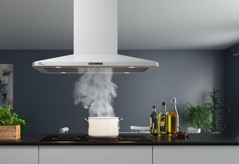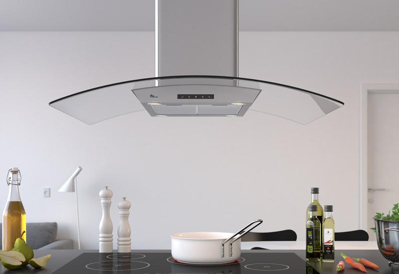 Om din spishäll är placerad på en köksö är den frihängande fläkten ett bra och effektivt alternativ.