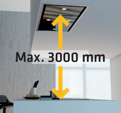 Du ska vara medveten om att avståndet från kokzonen till filterytan är längre än normalt. Denna typ av modell är vanligtvis utrustad med kantsug, vilket ökar effektiviteten. THERMEX rekommenderar att avståndet mellan hällen och filtret inte överstiger 3 meter.